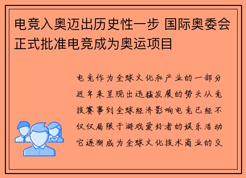 • 电竞入奥迈出历史性一步 国际奥委会正式批准电竞成为奥运项目