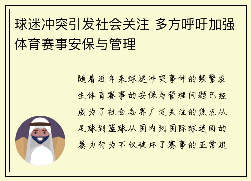 • 球迷冲突引发社会关注 多方呼吁加强体育赛事安保与管理