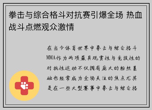 • 拳击与综合格斗对抗赛引爆全场 热血战斗点燃观众激情