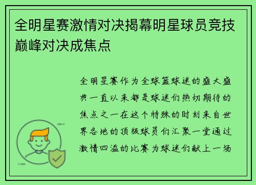 • 全明星赛激情对决揭幕明星球员竞技巅峰对决成焦点