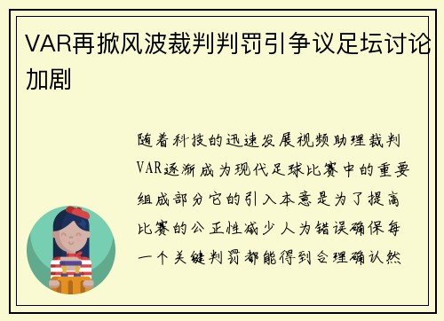 • VAR再掀风波裁判判罚引争议足坛讨论加剧