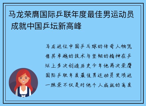 • 马龙荣膺国际乒联年度最佳男运动员 成就中国乒坛新高峰