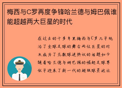 在过去的十多年里,梅西与C罗几乎统治了全球足球的舞台,两位巨星的对决成为了无数球迷热议的话题。如今,随着哈兰德与姆巴佩的崛起,足球界似乎迎来了新一代的超级球员。这让人不禁思考:梅西与C罗的时代是否会被...