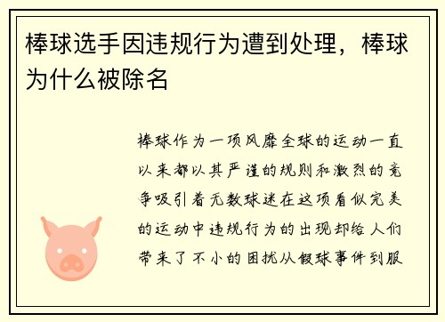 • 棒球选手因违规行为遭到处理,棒球为什么被除名