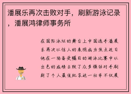 • 潘展乐再次击败对手,刷新游泳记录,潘展鸿律师事务所