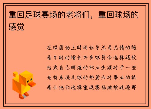 在绿茵场上,时间似乎总是无情的。随着年龄的增长,许多球员会选择退役,结束自己辉煌的职业生涯。对于一些老将来说,足球的热爱和对事业的执着让他们选择重返赛场,继续追逐那个永恒的梦想。 近年来,我们见证了许...