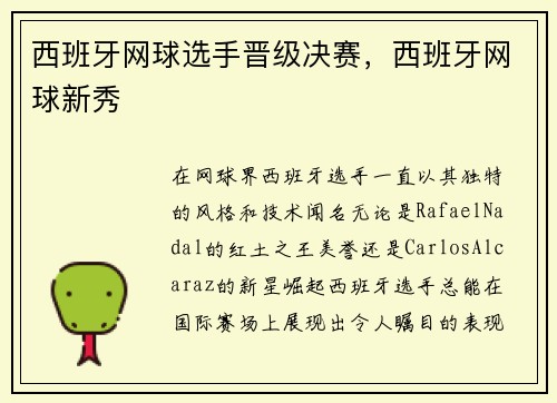 • 西班牙网球选手晋级决赛,西班牙网球新秀