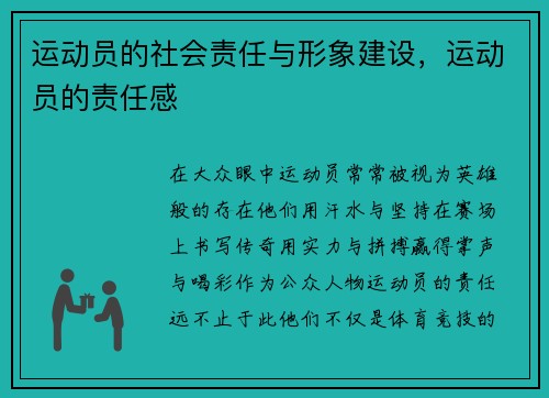在大众眼中,运动员常常被视为英雄般的存在。他们用汗水与坚持,在赛场上书写传奇,用实力与拼搏赢得掌声与喝彩。作为公众人物,运动员的责任远不止于此。他们不仅是体育竞技的参与者,更是社会价值观的传递者。在竞...