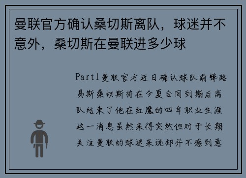 Part1 曼联官方近日确认,球队前锋路易斯·桑切斯将在今夏合同到期后离队,结束了他在红魔的四年职业生涯。这一消息虽然来得突然,但对于长期关注曼联的球迷来说,却并不感到意外。毕竟,桑切斯在曼联的表现一...