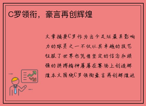文章摘要:C罗作为当今足坛最具影响力的球员之一,不仅以其卓越的技艺征服了世界,也凭借坚定的信念和顽强的拼搏精神,屡屡在赛场上创造辉煌。本文围绕C罗领衔豪言再创辉煌这一主题,从四个方面进行了详细探讨:首...